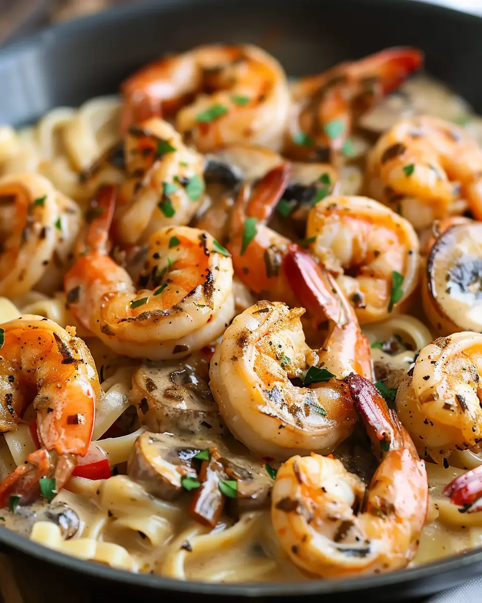 Now it’s showtime! Add the drained fettuccini to the pan with the creamy sauce and toss it all together gently. Ensure the pasta is well-coated with that delectable sauce, and fold in the blackened shrimp and sautéed mushrooms and shallots. Taste and adjust seasoning if needed—perhaps a pinch of salt or pepper to elevate those flavors.