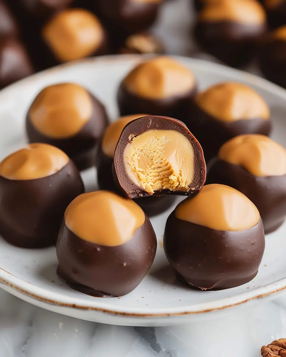 Buckeyes are delightful chocolate-covered peanut butter balls that satisfy your cravings.