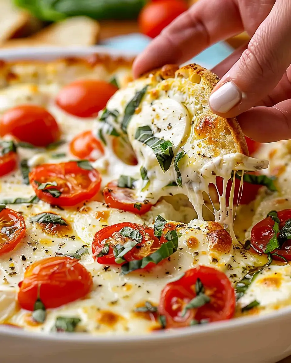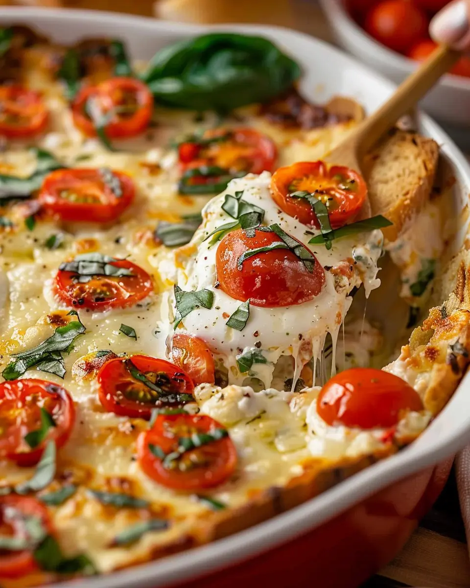 This Caprese Dip is a creamy and flavorful blend of fresh ingredients, perfect for any party or gathering.