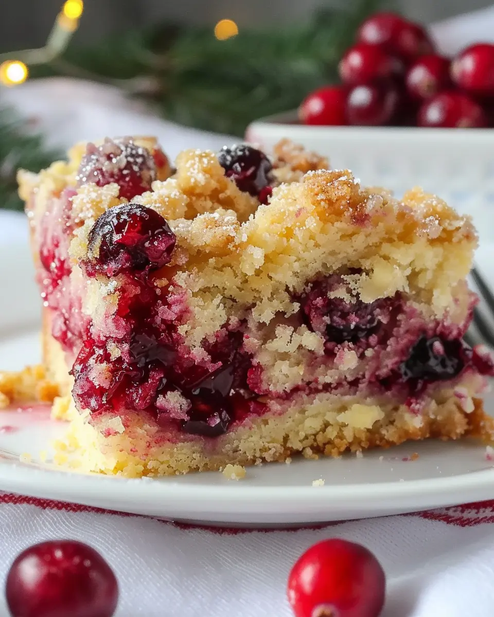 A delightful holiday dessert featuring tart cranberries and a sweet sugar cookie streusel topping.