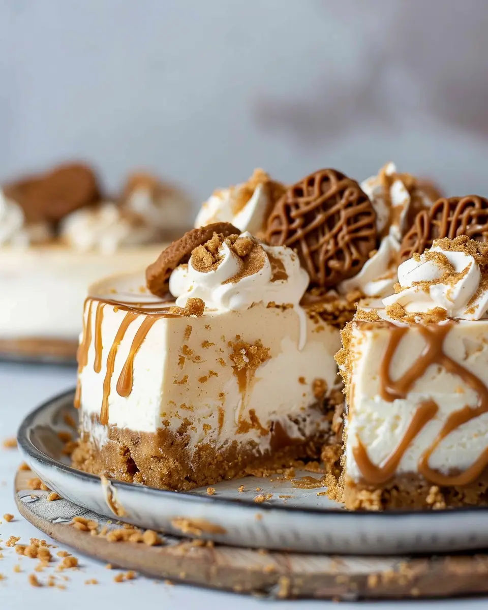 This indulgent and easy Cookie Butter No Bake Cheesecake is a perfect dessert for cookie butter lovers.