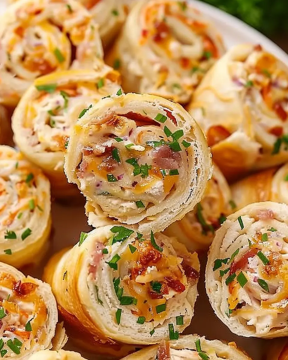 Indulge in these creamy, savory Crack Chicken Pinwheels featuring turkey bacon and chicken ham. Perfect for parties or a delicious snack!