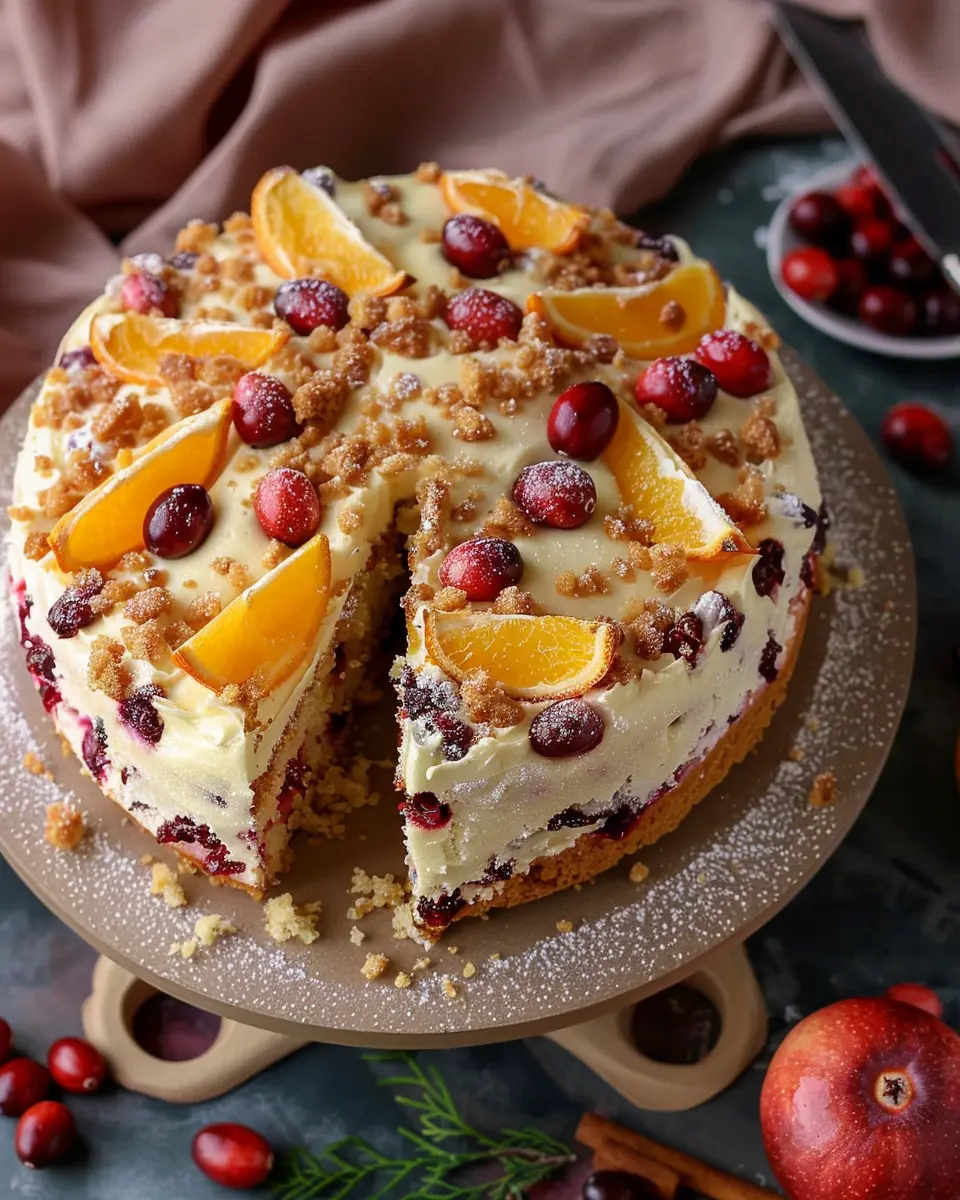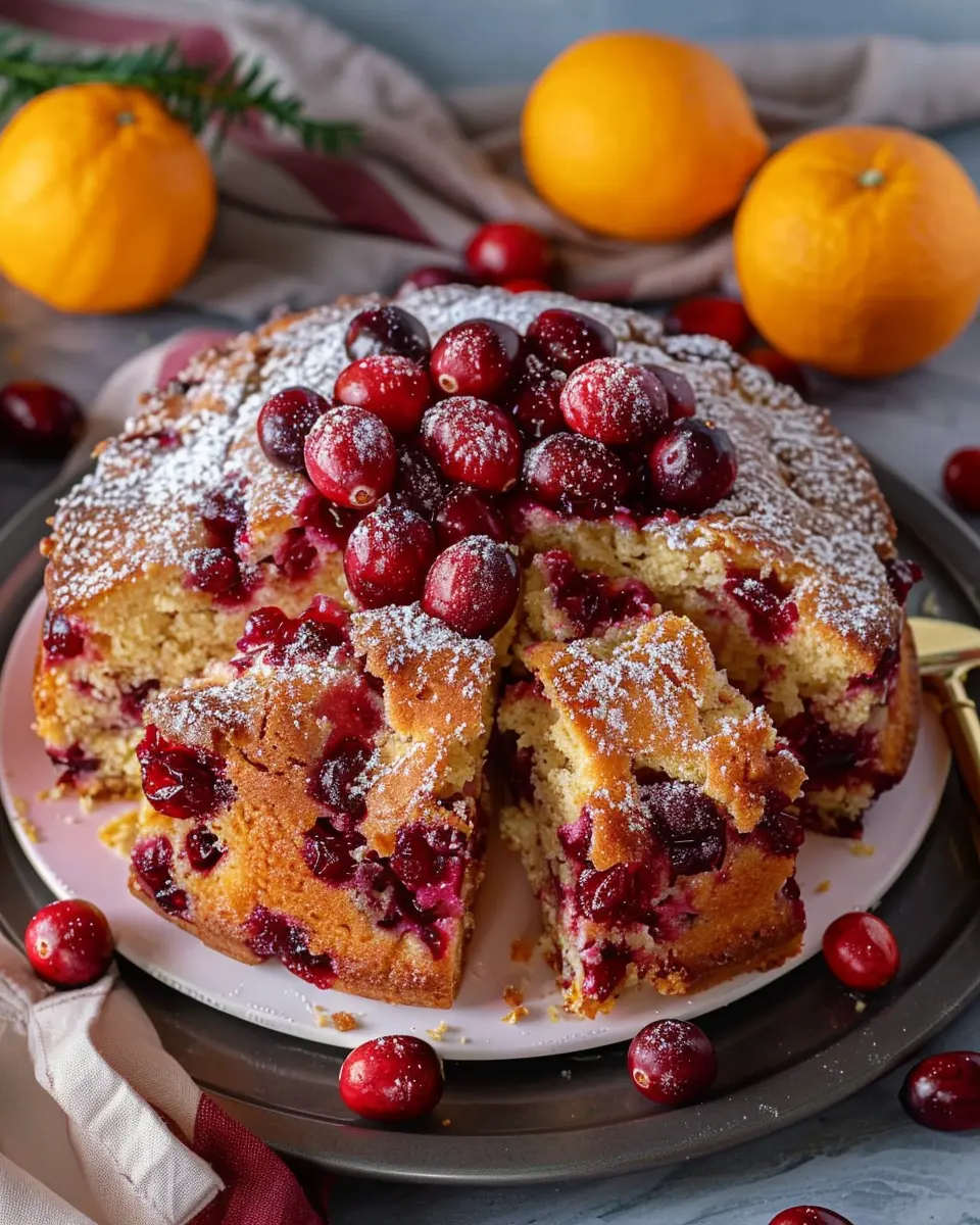 Delight your guests with this moist and flavorful Orange Cranberry Cake, perfect for holiday celebrations.