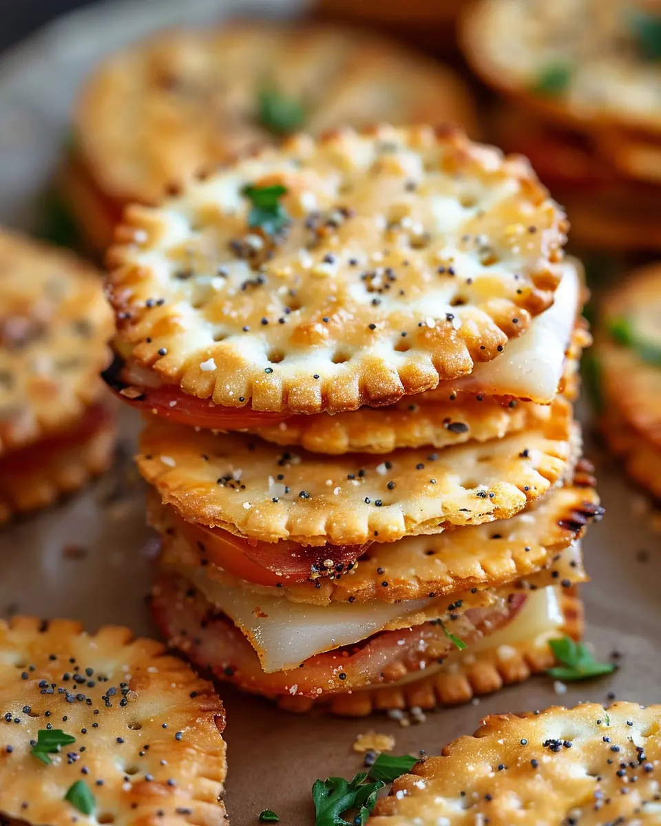 Delicious and easy-to-make Ritz Cracker Party Sandwiches filled with turkey bacon and chicken ham, perfect for gatherings!
