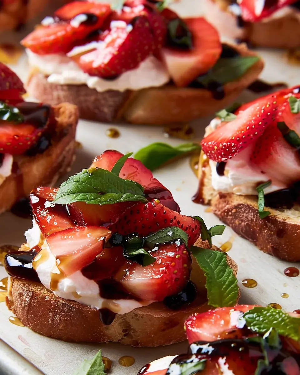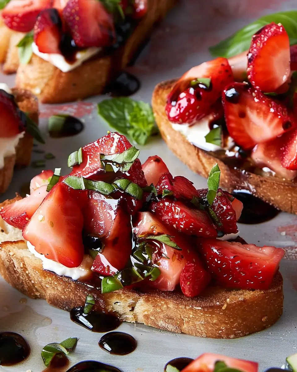 In wrapping up, strawberry balsamic bruschetta is not just a dish; it’s a delightful experience that beautifully marries sweet and savory flavors. Whether you’re hosting friends or just fancy a unique snack, this bruschetta will surely impress. I encourage you to give it a go—it’s easier than you think! Plus, the colorful presentation makes it perfect for your Instagram feed if you’re looking to share. Trust me, once you taste those juicy strawberries mingling with the balsamic glaze, you’ll want to make this a staple in your recipe rotation. For more inspiration, check out this guide on seasonal ingredients. Happy cooking!