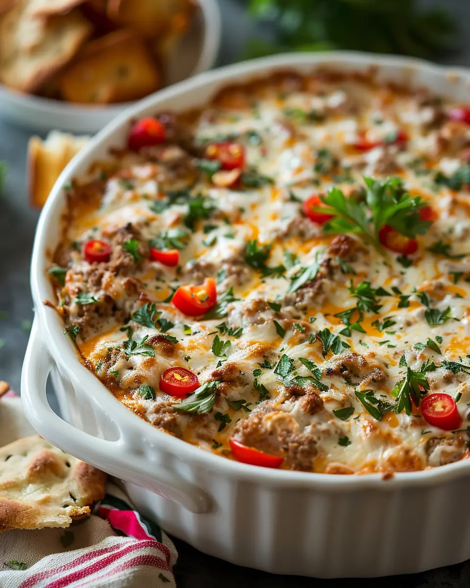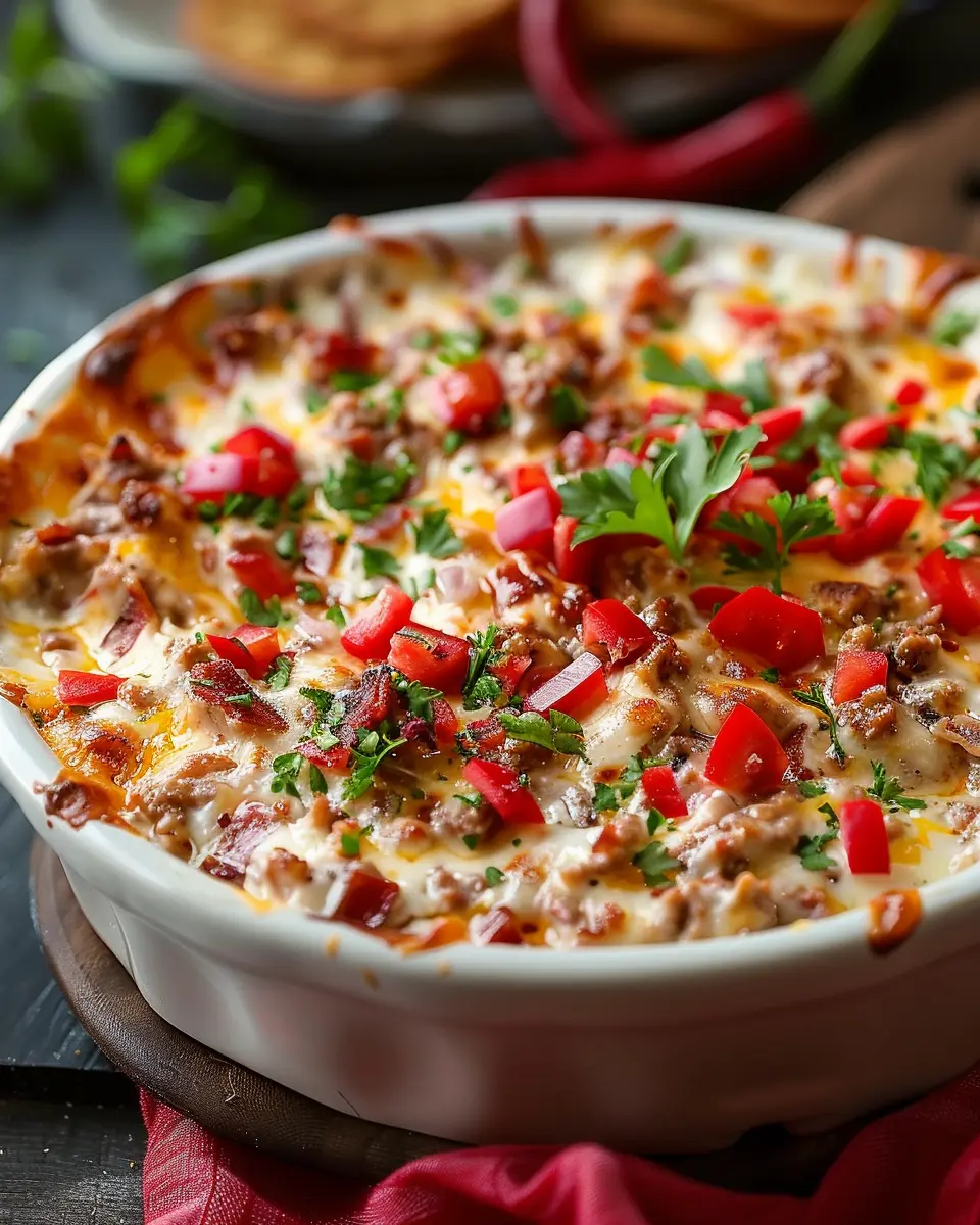 • Flavor Explosion: This dip marries spicy and savory flavors with a hearty base. Think creamy cheeses mixed with zesty spices, Turkey Bacon, and even Chicken Ham. Each bite is a delightful burst of textures that will keep guests coming back for more.